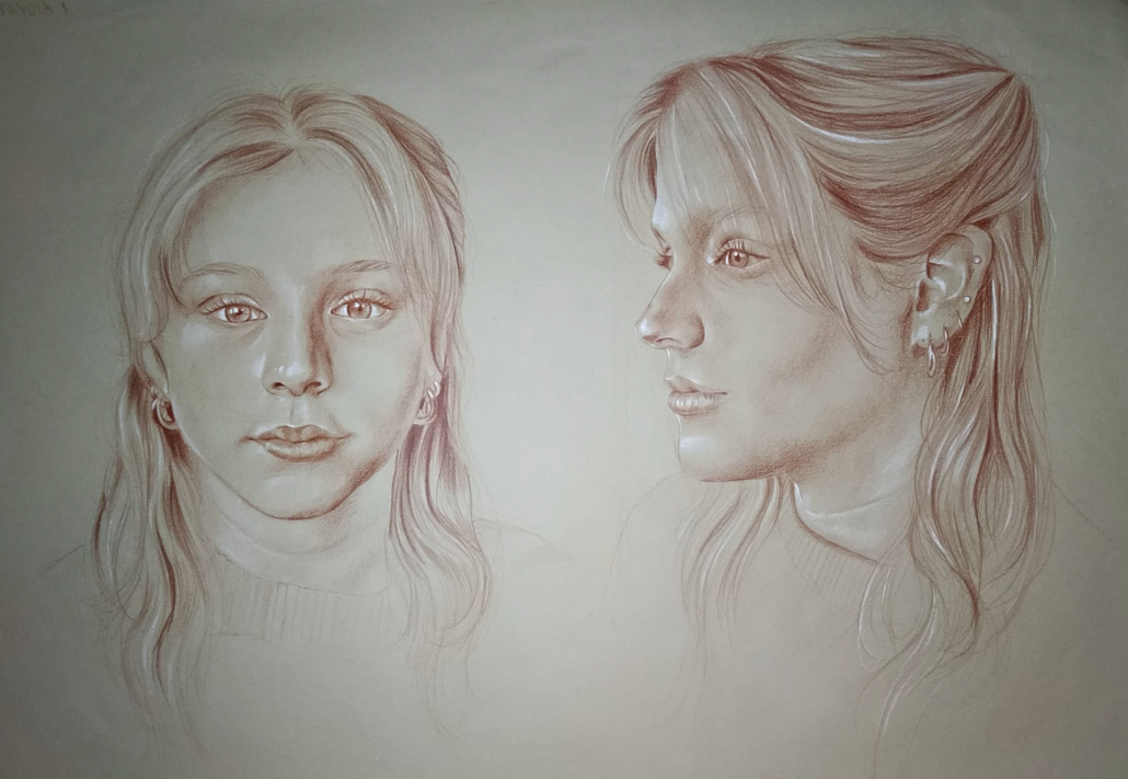 Mi piace disegnare il mio volto e riprodurre quello che mi circonda sia fedelmente all’aspetto realistico sia all’aspetto emotivo che mi suscita un soggetto.